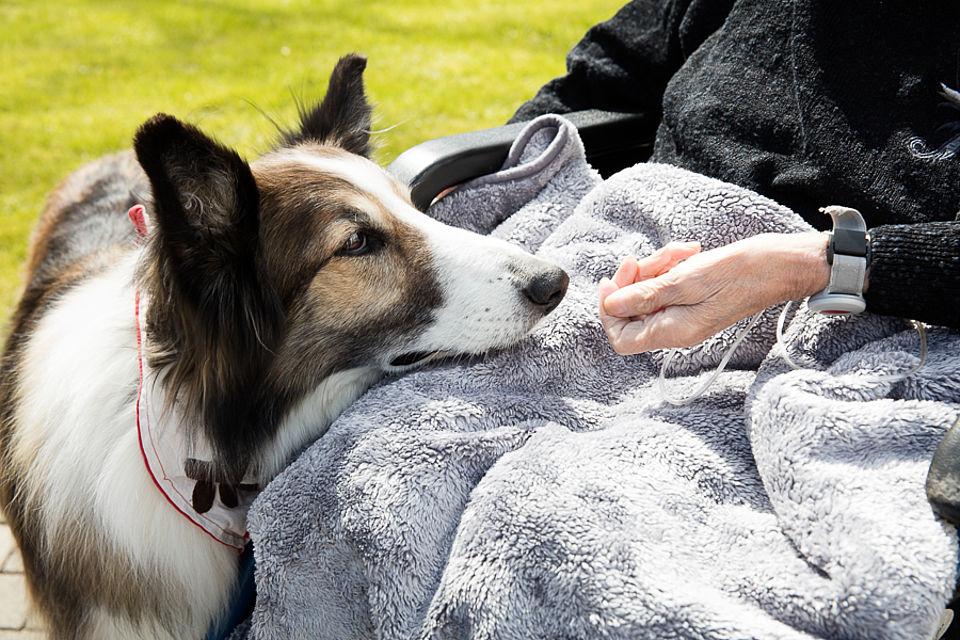 Oft erfreuen die Besuchsteams die Bewohner/innen auch mit gezielten kleinen Aktivierungen, gemeinsamen Spielen oder Tricks, die die Hunde vorführen können.